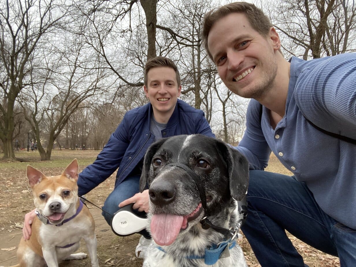 Somos Joey y Robert. Nos casamos en 2023 y llevamos juntos más de siete años. Vivimos en un apartamento en el Upper West Side de Manhattan con Bowser, nuestro perro mestizo de pointer y beagle de 15 años.